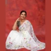 শিল্প ও ঐতিহ্যের মেলবন্ধন: আমাদের এই বিশেষ শাড়িটি তৈরি করা হয়েছে প্রিমিয়াম কোয়ালিটি হাফ সিল্ক কাপড়ে, যা একইসাথে উজ্জ্বল এবং পরতে অত্যন্ত আরামদায়ক। শাড়ির শুভ্র সাদা জমিনে লাল, হলুদ এবং বেগুনী রঙের ছোট ছোট ফুলের হ্যান্ড পেইন্ট নকশাটি করা হয়েছে অত্যন্ত যত্ন সহকারে।